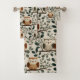 Un patrón continuo encantador y acogedor que presenta adorables búhos ilustrados redondos posados en delgadas ramas de árboles. El diseño muestra búhos en tonos terrosos suaves de marrón y gris, combinados con hojas de bosque de color verde apagado. Puesto sobre un fondo texturizado de crema ligera que se asemeja a lienzo fino.