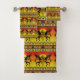 Las toallas de baño presentan un diseño tribal Kokopelli. Ver el resto de esta colección para accesorios de baño más al suroeste.