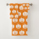 Tocante, espeluznante, calabazas patrón naranja y toallas blancas de Halloween.