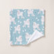 Patrón de canapés blancos con arcos y corazones en Delicado patrón Swirl, toallas de baño de fondo azul suave.