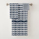 Juego de toallas de baño con patrón de chequeo de chevron azul marino. Las rayas de chevron azul y blanco de la marina para su decoración de verano de la casa de playa costera náutica.