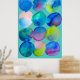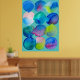 Una colorida acuarela de arte abstracto de la artista Sacha Grossel con círculos redondos de color azul fresco y verde púrpura en un diseño de patrones para mostrar los patrones de color que se derriten. El color de fondo es personalizable. Arte relajante y relajante.