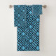 Líneas negras y azules al estilo de un patrón de repetición de clave griega. Motivo elegante y elegante de serpenteo. Decora tu vida con esta toalla de baño.