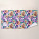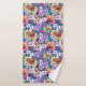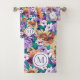 Patrón de collage de flores de verano coloridas. Monograma opcional. Colores púrpura, amarillo y verde.