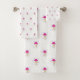 Un divertido juego de toallas con helados rosas y conos a su alrededor. Delicioso. Agregue un color al fondo si el blanco no es su elección.