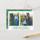 La invitación ideal para el invierno incluye dos fotos de la pareja en la parte delantera de la postal. Un patrón de copo de nieve enmarca la espalda. Para su comodidad, se proporciona una dirección de retorno y un mensaje preimpresos.