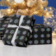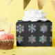 Patrón de copos de nieve brillantes multicolores en un fondo negro o puede cambiar el color de fondo a lo que desee. Para cambiarlo, seleccione el botón azul "editar diseño" y, a continuación, en el panel izquierdo, seleccione "fondo".