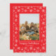 Esta tarjeta de vacaciones plana presenta una sola foto enmarcada en una línea de color sólido alrededor de la foto y un marco de patrón con copos de nieve dibujados a mano en Relieve metalizado rojo.