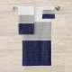 Moderno juego de toallas de baño con rayas cruzadas de color azul y gris minimalista