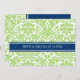 Tarjetas de invitación de matrimonio en elegante y contemporáneo color verde manzana brillante, azul marino oscuro y blanco clásico y moda de color damasco floral vintage. Personalizar estas invitaciones con los detalles de su boda. Disponible en productos de coincidencia para todas las necesidades de su boda.