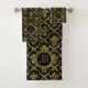 Máscaras florales de oro y vintage negras. Elegante dorado sobre blanco negro de damascos florales de textura metálica con monograma de personalizable.
