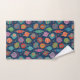 Balas de árbol navideño multicolor, decorativas, copos de nieve y estrellas dibujadas a mano con Relieve metalizado de oro falso sobre fondo de color azul oscuro.