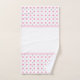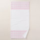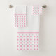 El cuarto de baño es elegante, con toallas de color rosa y gris con motivos de diamante.