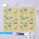 Montones de dinosaurios azules en un fondo amarillo. Rex tirannosaurus, Spinosaurus, Stegosaurus, Diplodocuments y Triceratops. ¡Perfecto para paleontólogos en ciernes! Arte original de Nic Squirrell.