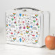 Esta obra de arte presenta un patrón que incluye varios símbolos relacionados con el orgullo gay en un diseño colorido.