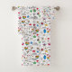 Esta obra de arte presenta un patrón que incluye varios símbolos relacionados con el orgullo gay en un diseño colorido.