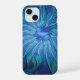 Arte fractal moderno y abstracto, una flor de fantasía azul. Diseño único para tu funda iPhone 15 y más.