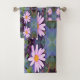 Este juego de toallas de baño floridas cuenta con un patrón de flores de margarita rosada retro con acentos amarillo, artreuse, morado, magenta, verde, rosado caliente, lavanda y negro. El resultado es un cuadro colorido, fresco, retro, artístico y florido que te encantará.
