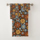 Un divertido patrón floral al estilo de los años 70. Color marrón, azul y amarillo