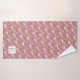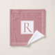 Flores blancas pequeñas sobre un juego de toallas de baño con flores rosadas y polvorientas. Muestra un patrón de flores y hojas pequeñas y tu monograma sobre el fondo polvoriento del rosa.