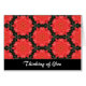 Una nota abstracta / plantilla de tarjetas de felicitaciones con un diseño geométrico atractivo basado en flores. Esta versión ha sido personalizada como una tarjeta "Pensando en ti" pero puede cambiarse por otros saludos y ocasiones. "Pensando en ti" escrito en el frente y dentro. (Si está personalizando esto, no olvide cambiar ambos mensajes).