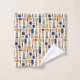 Este conjunto de toallas presenta un diseño moderno de ovales y rectángulos en patrones que se repiten en el diseño.