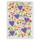 Patrón de fruta o uvas, manzanas, pera, naranjas, cerezas y kiwi.
