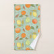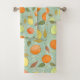 Patrón de fruta con limones, naranjas, lima y pomelo. Frutos cítricos brillantes sobre un fondo verde claro con salpicaduras multicolores de pintura.