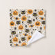 Este diseño presenta un lindo y caprichoso patrón de Halloween lleno de una deliciosa variedad de clásicos iconos espeluznantes. El fondo es de color crema claro, lo que aporta un suave contraste a los diseños atrevidos. El patrón incluye linternas juguetonas jack-o' con diferentes expresiones, gatos negros con ojos amarillos brillantes, cráneos sonrientes y murciélagos amistosos con alas naranjas. Las arañas, las lunas de media luna, las estrellas, las setas y los símbolos mágicos se dispersan por todas partes, lo que contribuye a la encantadora atmósfera de Halloween. La paleta de colores es llamativa en negro, naranja y amarillo, creando un diseño animado y festivo perfecto para decoraciones de Halloween, ropas o temas fiestas. El conjunto es divertido y encantador, ideal para celebrar la temporada espeluznante con un toque de dulzura.