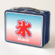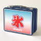 Esta divertida lonchera muestra el símbolo japonés kanji para el hielo, pronunciado "koori", sobre un colorido fondo azul a rojo, inspirado en un fresco cono de nieve de verano! Su propio nombre aparece en blanco en la parte inferior... sólo teclee su nombre en el espacio superior y observe el cambio de la caja!