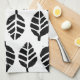 Impresión de papa de un patrón minimalista de hojas blancas y negras.