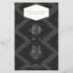 Coordina con el patrón Ikat en la plantilla de tarjetas de presentación del Diseñador de gris oscuro antes de las 12.00 horas. El fondo decorativo de ikat de esta plantilla de volante proporciona un fondo sutil para su nombre de negocio y texto promocional. Elegante y elegante. © 1201AM CREATIVE