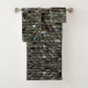 Presenta un diseño falso de mosaico de roca.