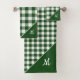 El elegante juego de toallas personalizado incluye un bonito trenzado de búfalo verde y blanco con un monograma de escritura blanca en un triángulo verde oscuro en la esquina inferior derecha de cada pieza. Personalizar con tu inicial en la barra lateral. Los cuadrados verde, blanco y verde claro de los cazadores forman un patrón marcado en negrita. Compra el conjunto completo o cualquier parte de él. Para ver el diseño Patrón de Gingham Verde y Blanco en otros elementos, haga clic en el enlace de la colección "Artes Rocklawn". Imagen creada digitalmente. Copyright ©Claire E. Skinner. Todos Los Derechos Reservados.