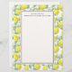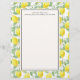 Papel letterhead diseñado con limones amarillos y hojas verdes, en un patrón repetitivo. Superpuesto en la parte superior hay un marco blanco para una escritura legible fácil. Personalice con un nombre y dirección u otro texto.