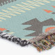 Patrón inspirado en mantas tribales y nativas americanas que presenta diseños geométricos. Paleta: marrón, naranja, azul cielo y blanco crema.