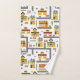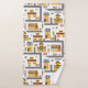 Este mapa personalizado de la ciudad hace un regalo perfecto para los niños y chicas que aman las carreteras, los pueblos, los edificios y los vehículos. Un restaurante-cafetería, una pizzería y una escuela en tonos amarillos, rojos y grises. También hay árboles y vallas. Añade el nombre de tu pequeño para un toque personal. Este conjunto de toallas es un gran regalo personalizado para un cumpleaños, Navidades u otras vacaciones.
