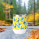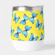 Un patrón delicioso con elegantes mariposas azules revoloteando sobre un fondo amarillo soleado, exudando una sensación de luminosidad y alegría. Este diseño es perfecto para añadir un toque de belleza y belleza natural.