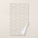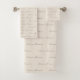 Un bonito conjunto de toallas de baño beige neutro con un patrón monograma que se puede personalizar a tu nombre. El tipo de letra del guión de la firma es elegante y elegante.