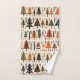 Ilustracion de tejido de arte popular con árboles de Navidad, formas en colores llamativos. Estilo escandinavo