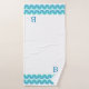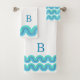 Hermosa moda contemporánea de moda retro a mediados de siglo moderno clásico azul azul azul celeste, lavanda violeta y turquesa verde patrón de ondas geométricas abstractas. Con espacio para personalizar o personalización con monograma o iniciales de su elección. Diseño fresco original, caprichoso y divertido disponible en una variedad de baños divertidos, elegantes y a la moda y decoración decorativa de la sala de pólvora, acentos y accesorios, y hermosos y modernos elementos de playa para la moda de moda y amante del arte, estilo retro vintage o amante del humor geométrico abstracto.