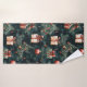 La imagen representa un motivo festivo de Navidad con un fondo verde oscuro, decorado con ilustraciones acuarelas de ramas de pino, adornos rojos y dorados, y regalos hermosamente envueltos adornados con arcos. Los copos de nieve dispersos y los colores tradicionales de las vacaciones realzan el ambiente de temporada y alegre.