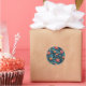 Un hermoso conjunto de pegatinas redondos con un patrón floral de papel sin fisuras contra un fondo azul.