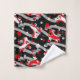 Piel roller Rockabilly retro derribar inspirado en las toallas de baño. Cerezas, rosas, patines y dados en una cinta gris y delicado fondo de polka punto.