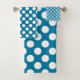 Patrón de puntos de polka blanco sobre el conjunto de toallas de fondo azul verde azulado