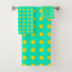 Patrón de puntos retro en toallas de baño de color verde y amarillo