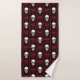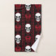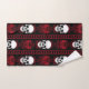 Este diseño gótico tiene un patrón ornamentado a rayas de adornos barrocos, calaveras y corazones en un esquema de color negro y rojo.