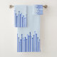 Patrón de rayas modernas en diferentes tonos azules sobre fondo azul pálido. Moda intemporal para tu cuarto de baño, un gran regalo. Unas toallas de baño maravillosas. Diseñado por Marions Art