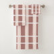 Toalla de baño de patrón de rayas rosadas marrones diseñada por Nisha Prabhu. Este juego de toallas de baño con rayas rosas marrones es un lujoso y elegante complemento de su cuarto de baño. El conjunto incluye una toalla de baño, una toalla de mano y una tela de lavabo de diseño contemporáneo con rayas marrones y rosas. Tanto si está actualizando su cuarto de baño como buscando un regalo atento, este juego de toallas de baño le dará un toque de elegancia y sofisticación a cualquier decoración de baño. Relájese con este lujoso juego de toallas de baño de rayas rosas marrones.