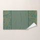 Patrón estético botánico repetido de ramas doradas y verdes sobre fondo verde con rayas.